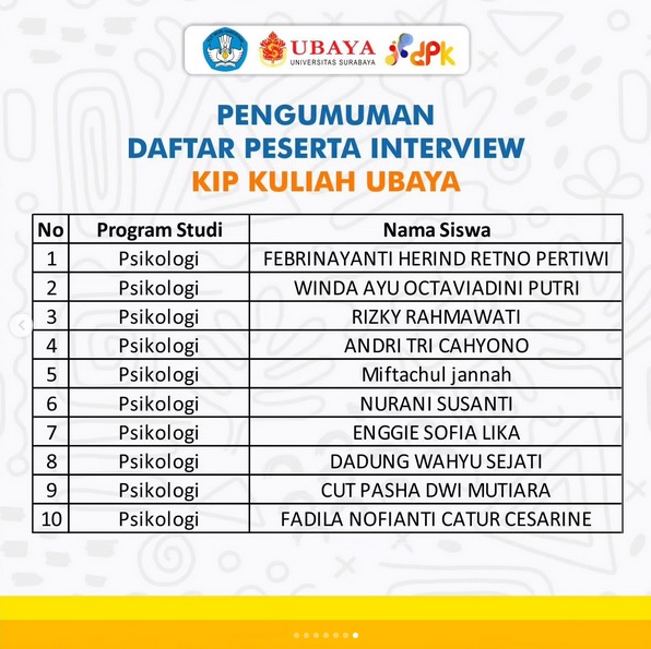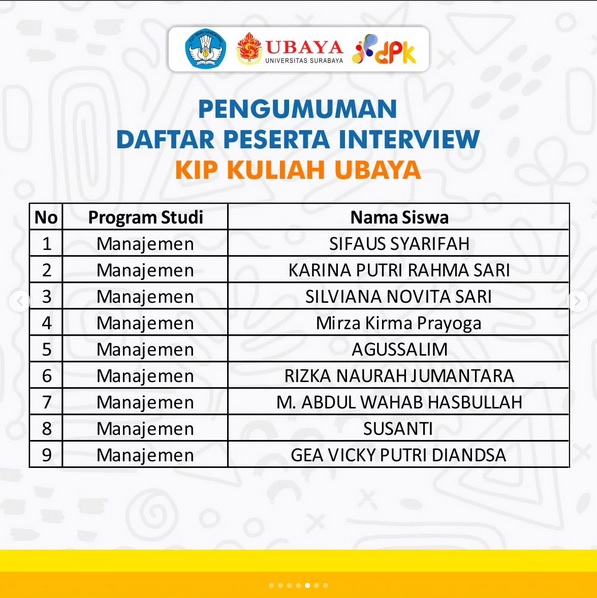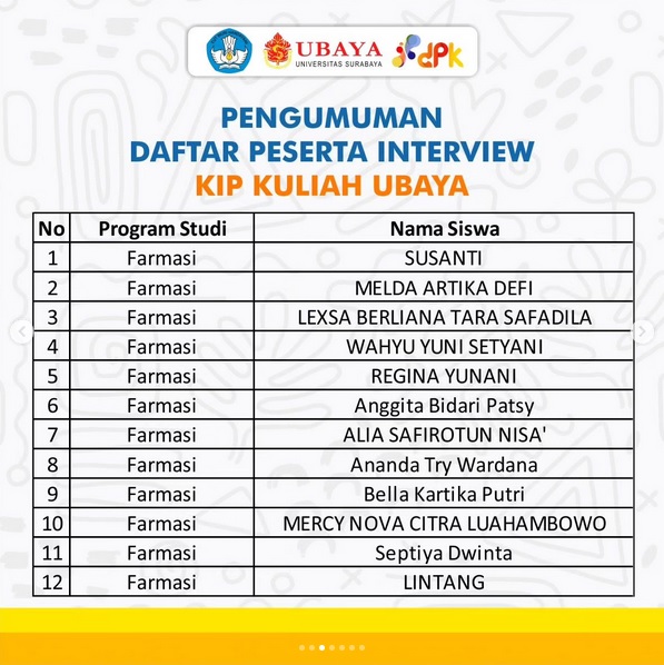 Selamat untuk 89 Peserta yang lolos seleksi untuk dapat mengikuti Interview. Teman-teman yang lolos akan dihubungi langsung untuk menerima informasi terkait jadwal interview. Untuk teman-teman yang belum dihubungi, mohon maaf sebesar-besarnya bahwa teman-teman belum bisa melanjutkan ke tahapan selanjutnya.