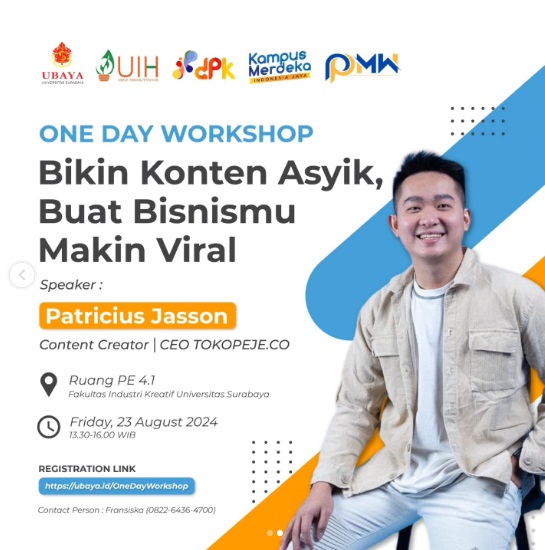 Yuk, ikuti One Day Workshop : Bikin Konten Asyik, Buat Bisnismu Makin Viral!!😍🙌