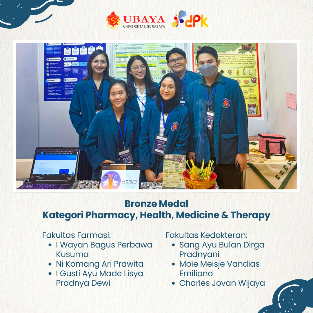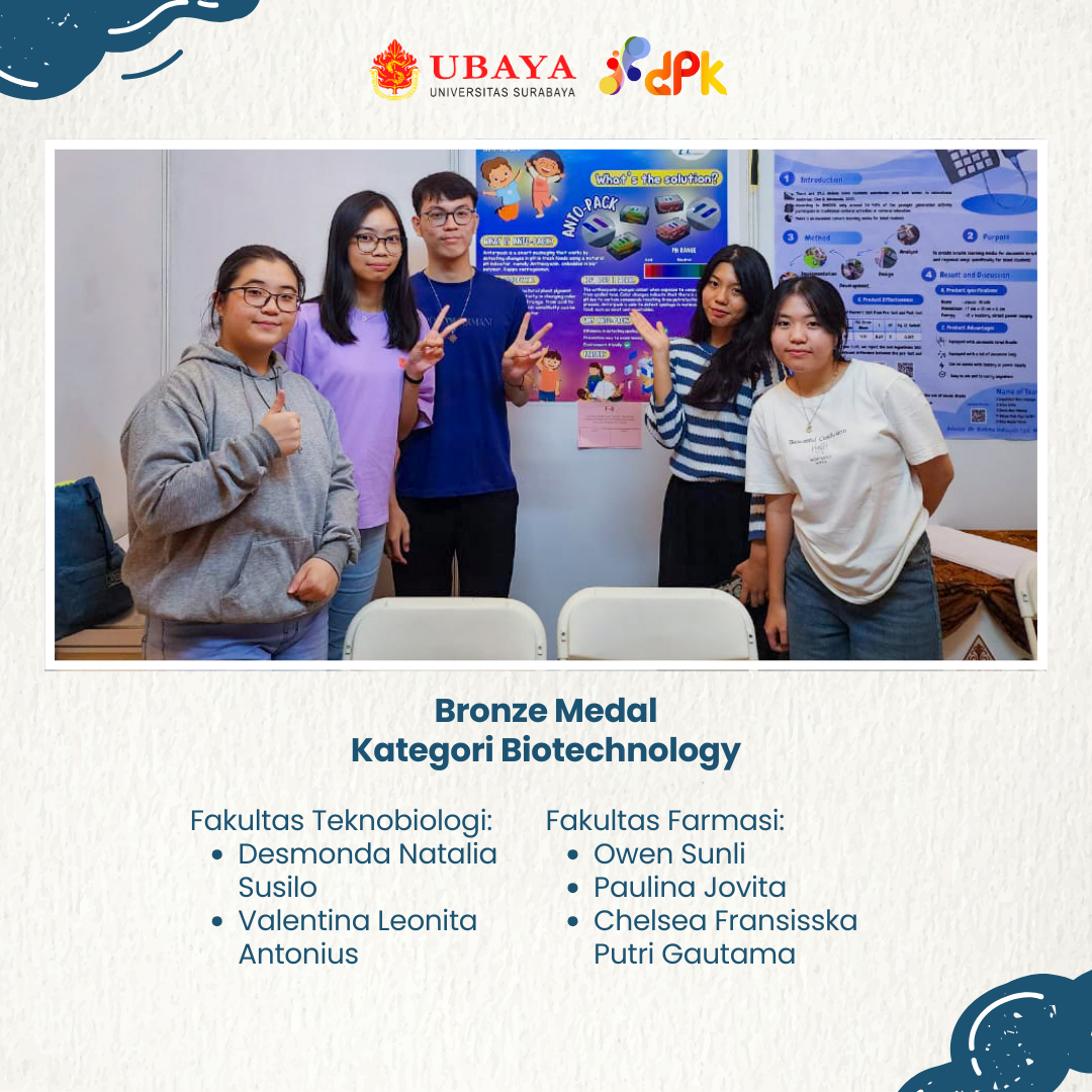 Kolaborasi mahasiswa Fakultas Farmasi, Teknobiologi, dan Kedokteran UBAYA berhasil bawa pulang Bronze Medal nih di ajang World Invention Technology Expo, Indonesia Inventors Day 2024 yang diadakan di Bali 🎉