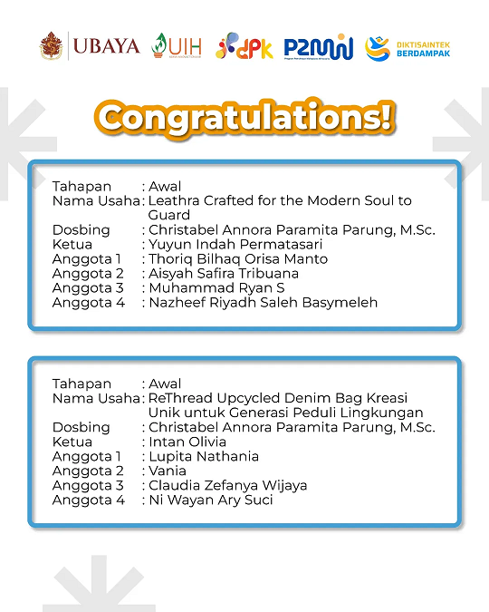 Lima tim Program Pembinaan Mahasiswa Wirausaha (P2MW) dari Universitas Surabaya berhasil lolos dan mendapatkan pendanaan di tahun 2025 ini, lho! ππΌ