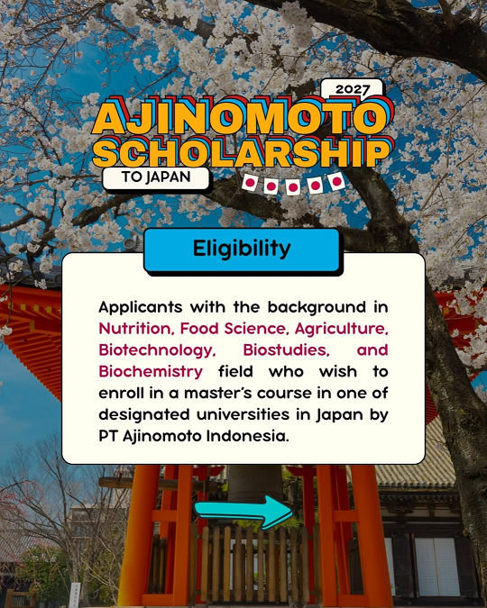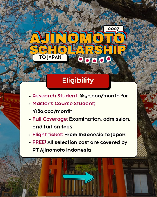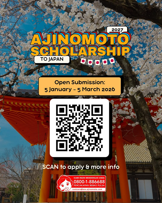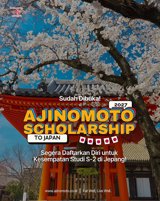 PT Ajinomoto Indonesia melalui Ajinomoto Foundation kembali menggelar Ajinomoto Scholarship to Japan Academic Year of 2027 lho!