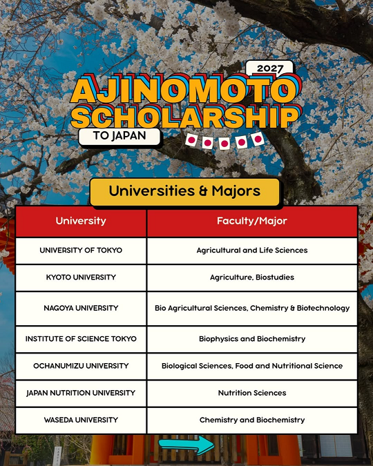 Scholarship hunters, AJINOMOTO SCHOLARSHIP 2027 is OPEN!