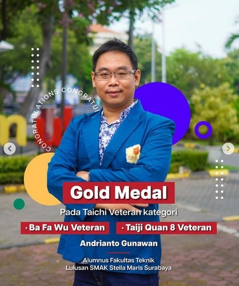 Pada kompetisi kali ini Jonathan Alexander Arianto Juwana, mahasiswa Fakultas Farmasi UBAYA meraih 3 Gold Medal pada 3 kategori yaitu Nanquan, Nandao, dan Nangun, sedangkan Andrianto Gunawan seorang Alumnus Fakultas Teknik UBAYA berhasil meraih 2 Gold Medal pada cabang Wushu kategori Ba Fa Wu Veteran dan Taiji Quan 8 Veteran 🥇