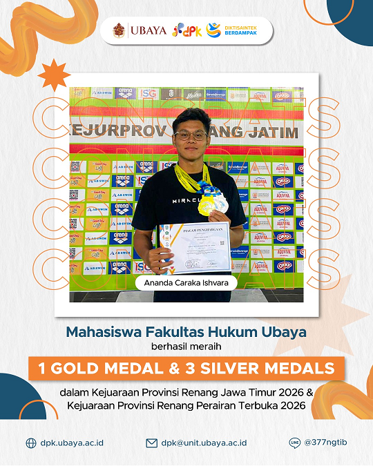 Mahasiswa Fakultas Hukum Ubaya berhasil meraih 1 Gold Medal & 3 Silver Medals dalam Kejuaraan Provinsi Renang Jawa Timur 2026 & Kejuaraan Provinsi Renang Perairan Terbuka 2026๐
