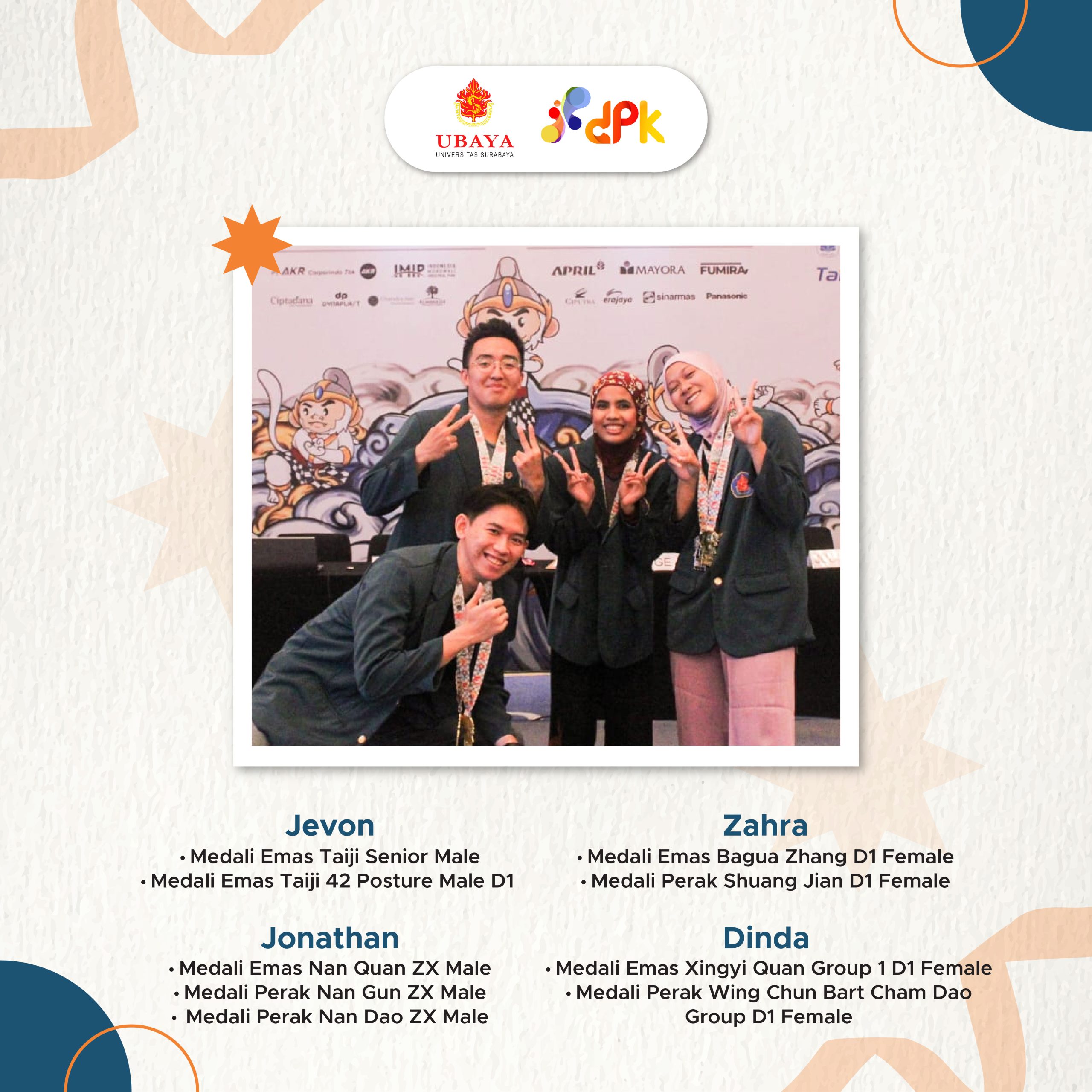 Mahasiswa Fakultas Farmasi dan Psikologi Ubaya berhasil meraih Gold dan Silver Medal dalam Indonesia International Kungfu Championship (INA IKC) 2024🤩🙌