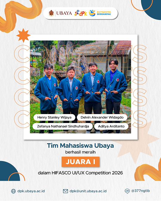 Tim Mahasiswa Ubaya berhasil meraih Juara 1 dalam HIFASCO UI/UX Competition 2026π